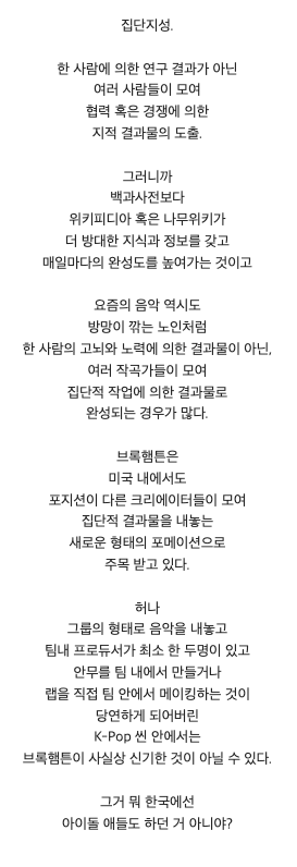 브록햄튼에 대해서 길게 얘기하면 밤을 샐 수도 있겠지만, 내가 언젠가부터 느끼는건 굉장히 케이팝의 구조와 유사하다..라는 것이다.